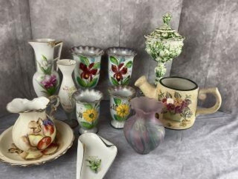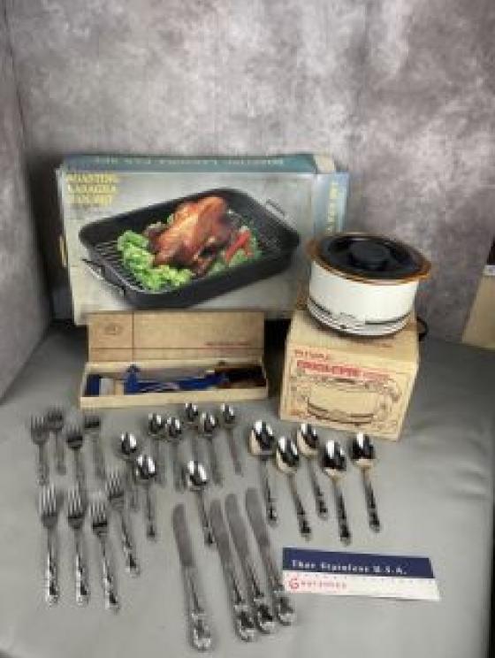 Featuring: many, many selections of tools with many Craftsman items, household goods, furnishings including a highly desirable Mid-Century Modern red kitchen table and chairs and other Mid-Century Modern items, items and ephemera specific to Galax and the surrounding region, Surry County genealogy books, art, quilted and crochet items, an extraordinary collection of glassware including large Early American pressed glass serving items, Fenton, carnival glass, many silver plated items in great condition, vintage kitchen items including several Fire King items featuring a complete Fire King set from the 1960s that was unopened in original box, large selection of Princess House featuring discontinued items, flatware, coins, lift assist recliner, many books including a spiritual library assembled over a lifetime, great recipe books including Southern Living, crystal stemware, fine jewelry and costume jewelry, lighted china cabinet, dining room table and chairs, vintage items from the Galax Belk Store and Globman’s of Galax, vintage trunks, vintage Pyrex, Bonanza lunch box, vintage vinyl including Beatles and Sonny and Cher, vintage tins, vintage license plates and much more.