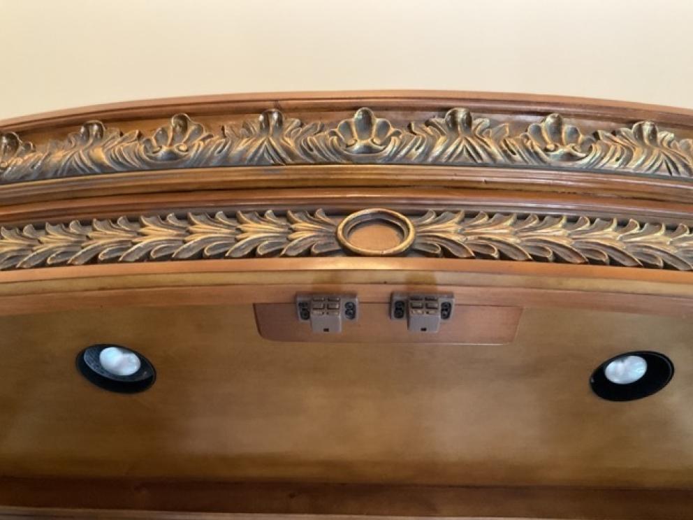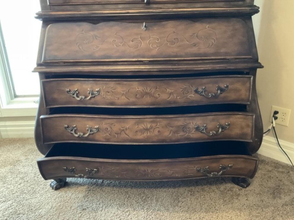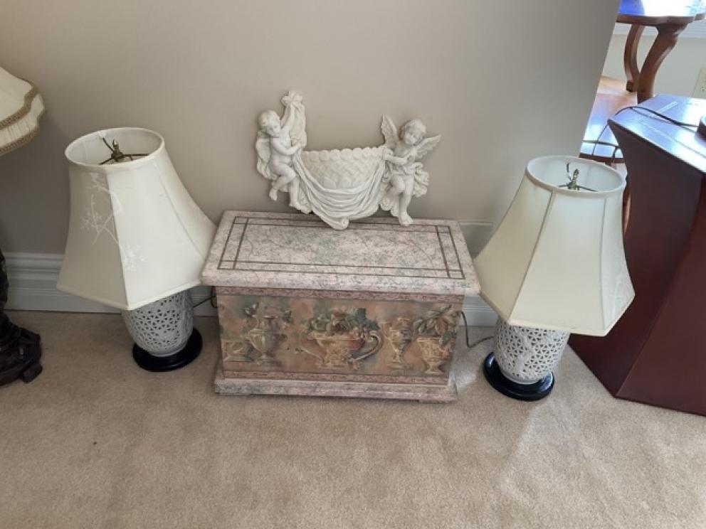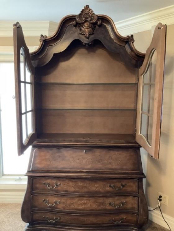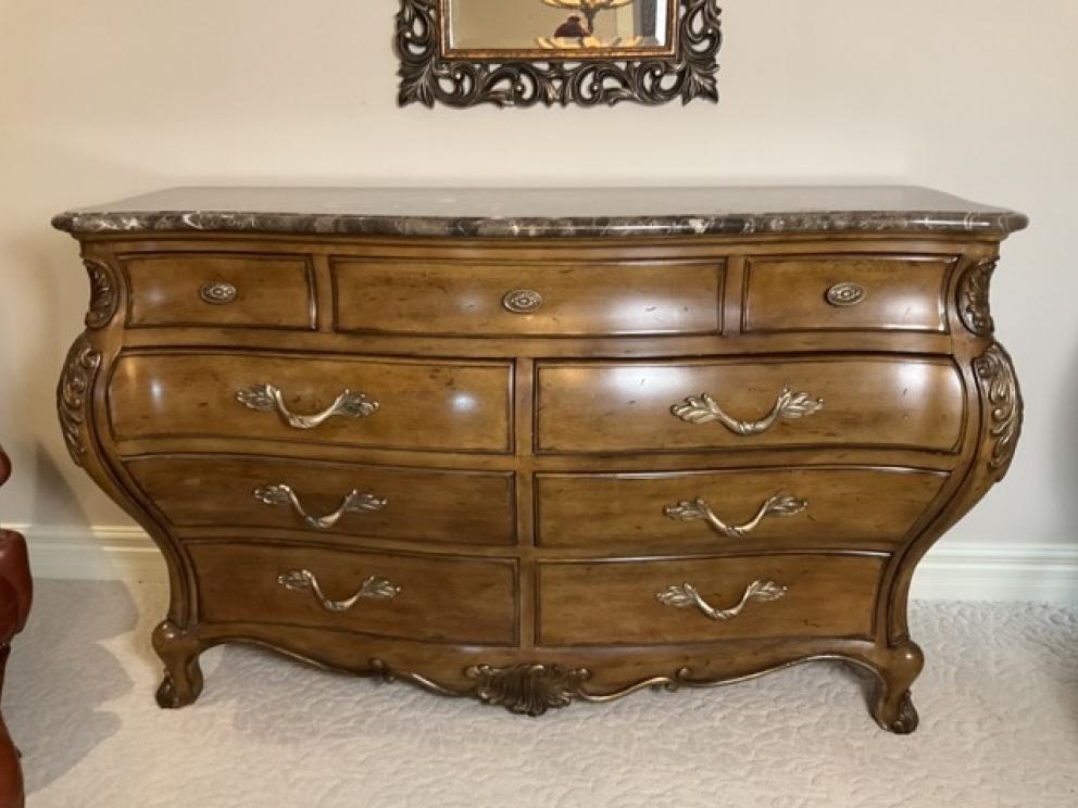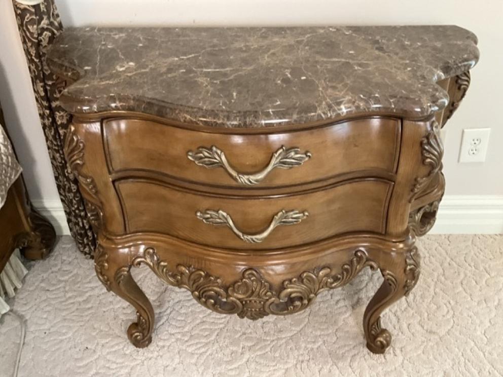 Beautiful, spacious home filled with sophisticated, elegant and ornate furniture and mirrors. The home is filled with Henredon and Pulaski furniture with gold leaf beds and matching bedside tables. Granite marble surfaces complete the tops of luxurious and beautiful wooden pieces. Small baroque figures from cherubs to art nouveau statuettes dawn the most fantastic and beautiful decor. Books of Life history and old books from Pinocchio to Alice in Wonderland finish the fine aspects of this home. Fireplace grates from political estates to baroque mirrors in every room. Art reliefs and crystal vases with arrangements compliment the sophistication that completes this home. The furniture is the focal point and inspiration from which the house was designed and built around.