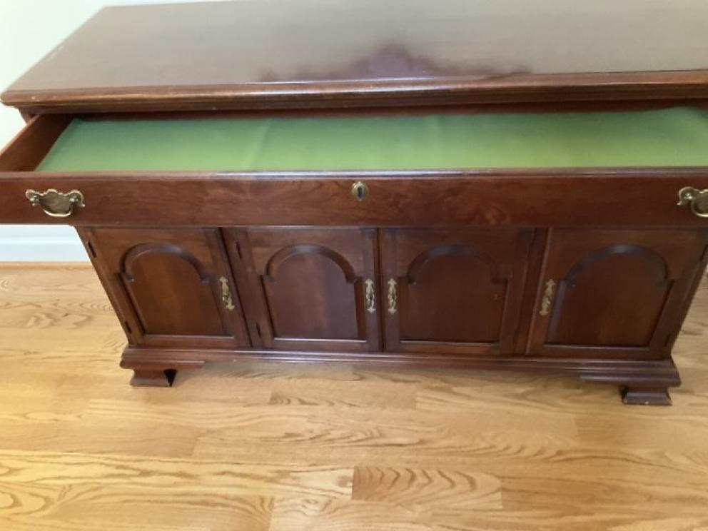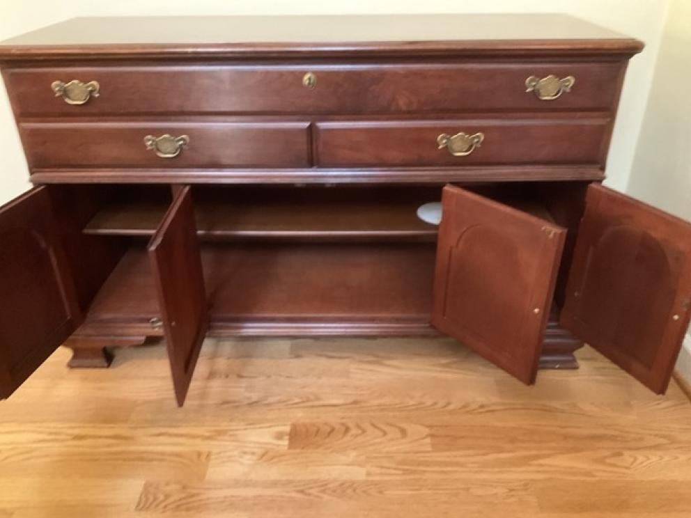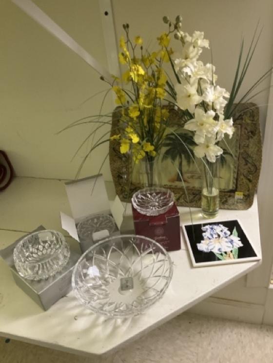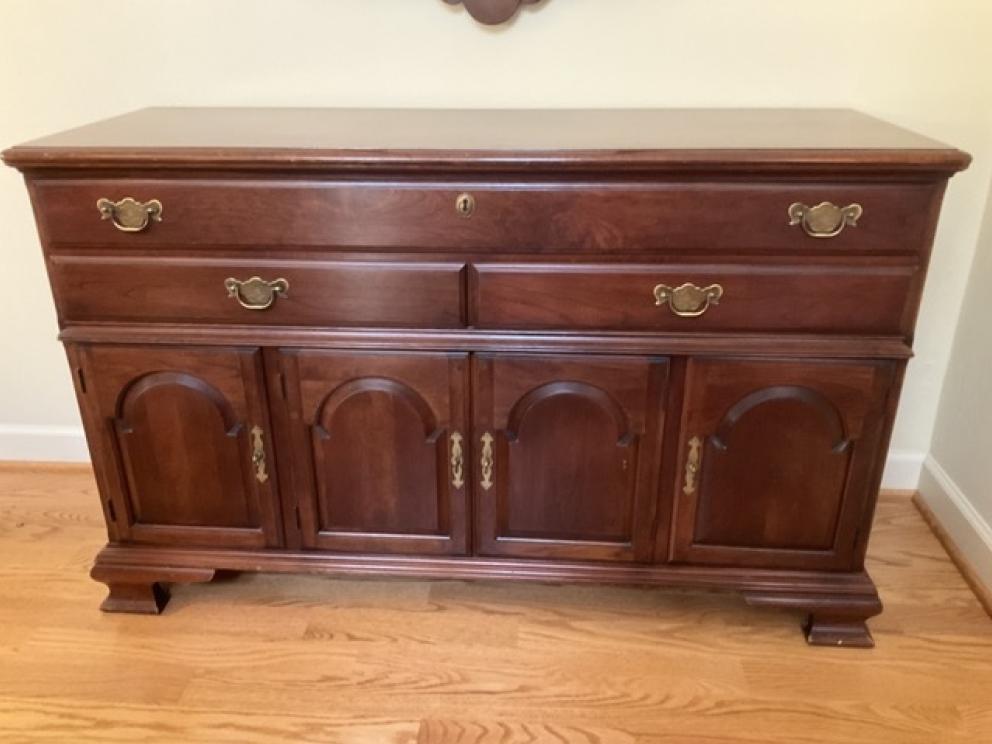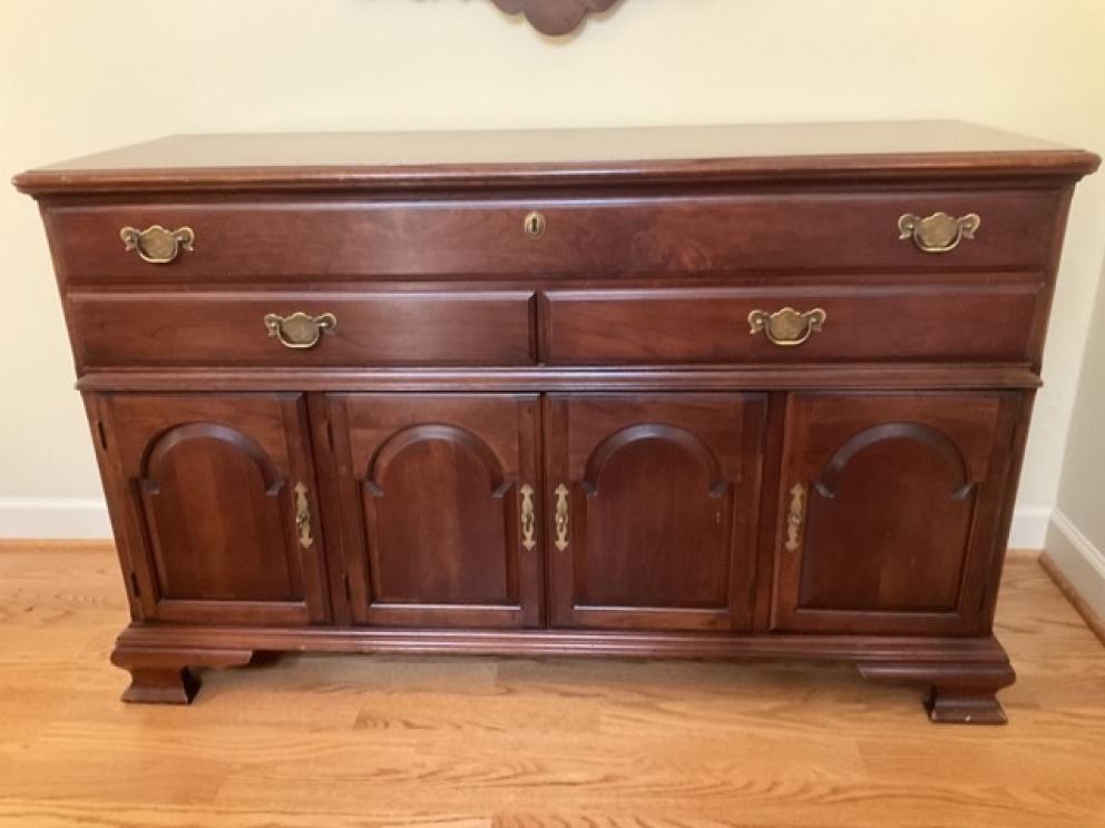 Featuring: Gold, platinum and silver jewelry, ladies Ebel wrist watch, High end Furniture such as Statton End tables, Henkel Harris Dining room furniture and bedroom furniture, and Nightstands black cherry, Pennsylvania House four drawer chest & two buffets, Chippendale side chairs, sterling silver, coin silver, orientalist rugs, leather wing chair,& blue leather chair and ottoman , art by noted artists Harriet Stokes, Patsy Tidwell, Sally Mook, Erik Fitzpatrick, P. Buckley Moss, George Shumate, Helen Guerrant, Vera Dickerson, David Heath, Jason Fizer, Dee Watson and Marsha Heatwole, Miller slag glass lamp, designer lamps, brass items, E.Strick carved ducks & swans, Quilts, Fenton, Lenox Christmas Dishes, Cut Glass, Art glass, Waterford Crystal, Lenox, kitchen Aide mixer & other Kitchen Aide counter top appliances , upholstery pieces, including Henreden Sofa, Custom brass sofa table &coffee table, local art work such as. David Yurman Jewlery, Sterling silver pieces, patio furniture & garden ornaments/yard art