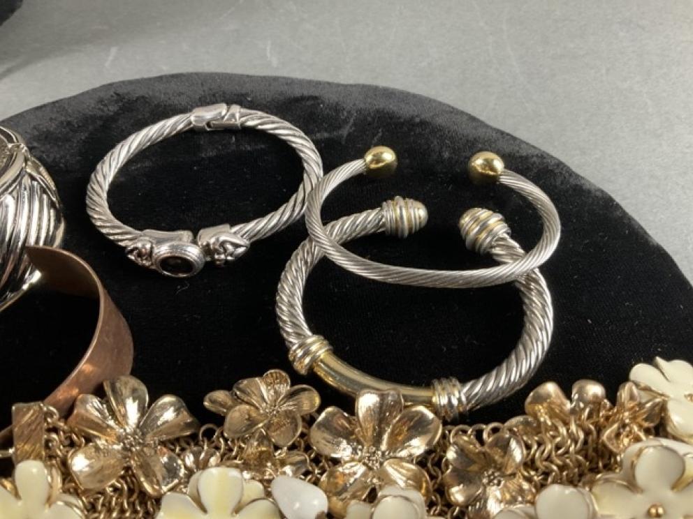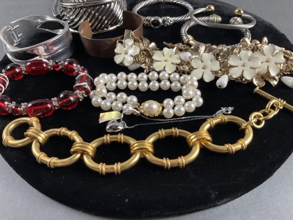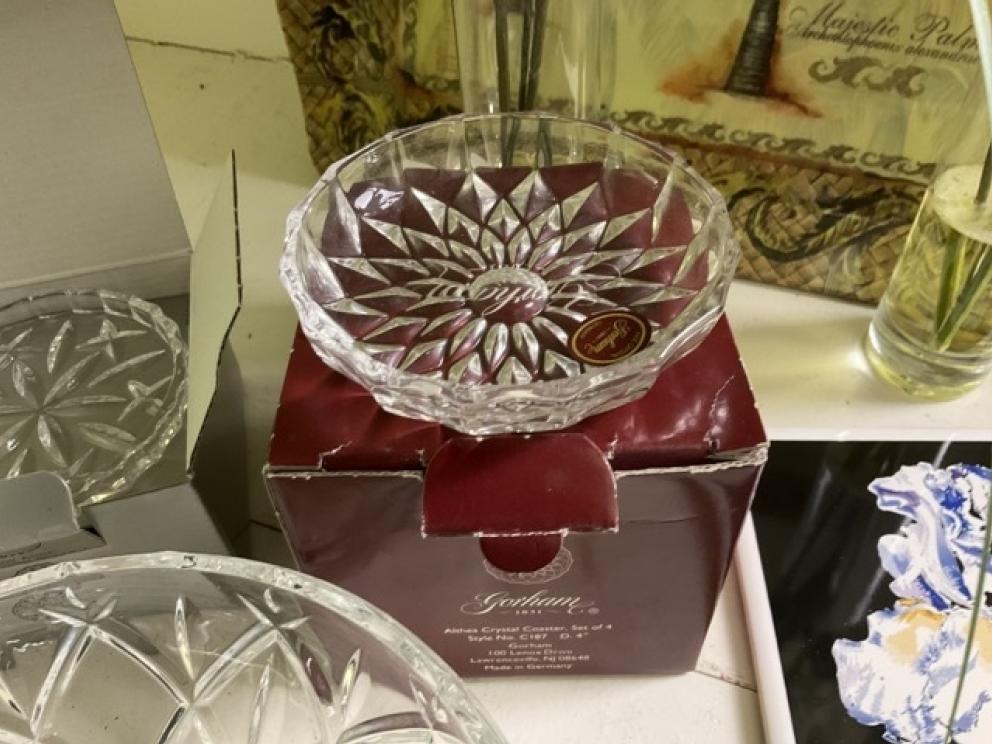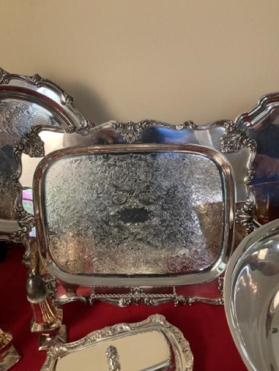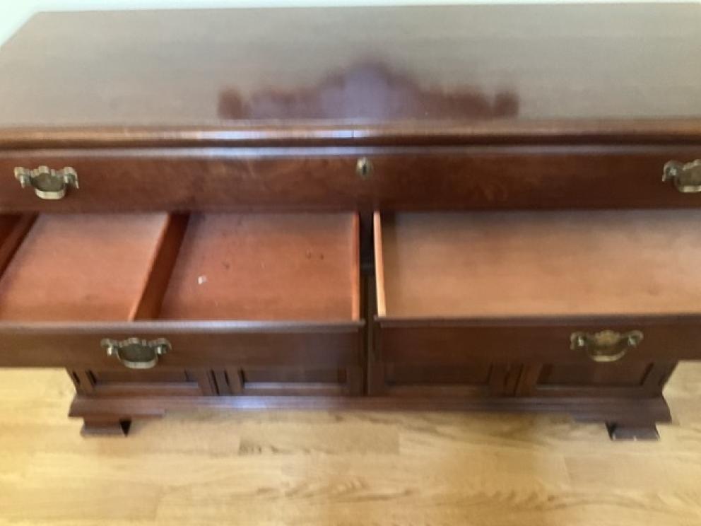 Featuring: Gold, platinum and silver jewelry, ladies Ebel wrist watch, High end Furniture such as Statton End tables, Henkel Harris Dining room furniture and bedroom furniture, and Nightstands black cherry, Pennsylvania House four drawer chest & two buffets, Chippendale side chairs, sterling silver, coin silver, orientalist rugs, leather wing chair,& blue leather chair and ottoman , art by noted artists Harriet Stokes, Patsy Tidwell, Sally Mook, Erik Fitzpatrick, P. Buckley Moss, George Shumate, Helen Guerrant, Vera Dickerson, David Heath, Jason Fizer, Dee Watson and Marsha Heatwole, Miller slag glass lamp, designer lamps, brass items, E.Strick carved ducks & swans, Quilts, Fenton, Lenox Christmas Dishes, Cut Glass, Art glass, Waterford Crystal, Lenox, kitchen Aide mixer & other Kitchen Aide counter top appliances , upholstery pieces, including Henreden Sofa, Custom brass sofa table &coffee table, local art work such as. David Yurman Jewlery, Sterling silver pieces, patio furniture & garden ornaments/yard art